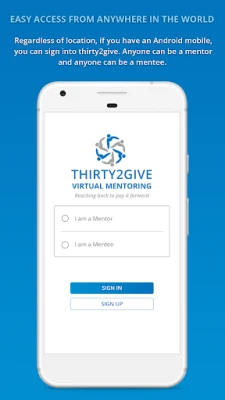 What is Thrity2give Virtual Mentoring? Very simply, Thirty2give is a virtual mentoring app that uses a smartphone to connect two people, a mentee, and a mentor, with the opportunity to commit 30 days to each other to share life-changing knowledge. It is the first smartphone app to facilitate authentic and collaborative mentoring virtual relationships. Driven by renewable 30-day cycles, the mentoring relationships are structured in a private environment that promotes a healthy and unobstructed transfer of knowledge, from a mentor who is eager to share to a mentee who is eager to learn.