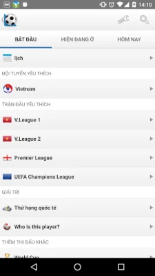 - Lịch / cố định tổng quan cho mỗi quốc gia / giải đấu - Bảng sống trong các trận đấu bóng đá - Topscores - Live thống kê bóng đá (bóng kiểm soát bóng, cú sút vv) - Thông tin Player - Nhóm thông tin - Thay thế - Xem phim trận đấu