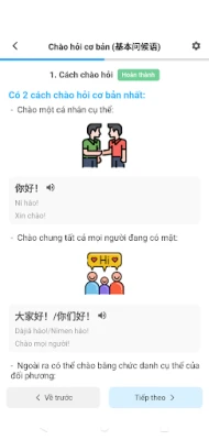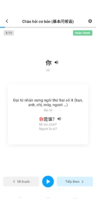 Ứng dụng "Tiếng Trung cơ bản" (Learn basic Chinese) gồm nhiều tính năng thú vị giúp bạn bắt đầu học tiếng Trung 1. Học phát âm 2. Học theo chủ đề Với mỗi chủ đề sẽ gồm: + Hội thoại + Từ mới + Ngữ pháp + Bài tập