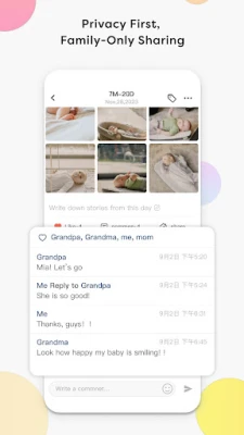Your baby’s timeline is visible for those who have been invited and admitted to be your family, buddies and fans. Privacy settings are always available for your special requirements. Those who have connected with your child could add captions and comments under each pic.
