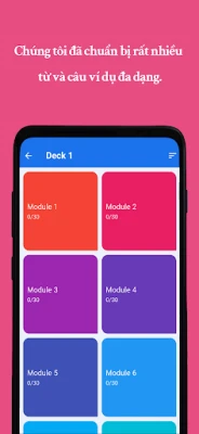 Bằng ứng dụng này sau khi học xong các từ vựng cơ bản, người dùng có thể tiếp tục học các từ trung cấp và cao cấp để đạt được điểm số cao hơn.