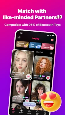 Remote Control & Partner Interaction: Connect your remote-controllable toy to Tophy and find temporary partners for mutual control. Enjoy real-time pleasure together.