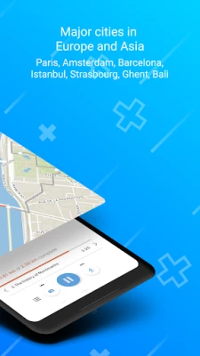 The app works offline, so you don't need a data plan or Wi-Fi to access the tour guide for major cities in Europe or Asia, so you won't be charged for roaming fees.