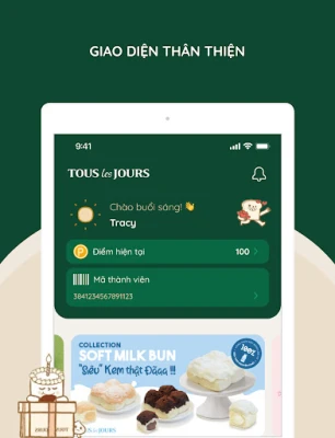 App thành viên chính thức của TOUS les JOURS với các đặc quyền dành riêng cho các hội viên.