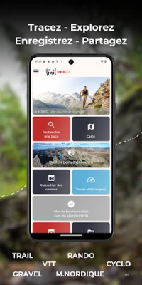 TrailConnect est une application spécialement conçue pour la pratique des sports outdoor et vous propose des fonctionnalités et des services pour découvrir, parcourir et partager :