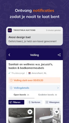 Gebruik deze App om direct overbiedingsnotificaties te ontvangen, wanneer u niet meer de hoogste bieder bent.