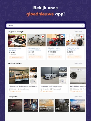 De Troostwijk Veilingen App geeft u de mogelijkheid om altijd en overal mee te bieden op een van onze actuele veilingen. Zowel het bedrijfsleven als particulieren kunnen bieden bij Troostwijk Veilingen.