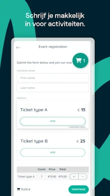 ✔ Eenvoudig aanwezigheden doorgeven, inschrijven, communiceren met je team, facturen betalen, een reservatie maken, … waar en wanneer je maar wil.