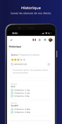 CLIENTS : - Suivez votre programme et vos séances facilement depuis l'application U-Coach. - Suivez votre évolution au fil des jours.
