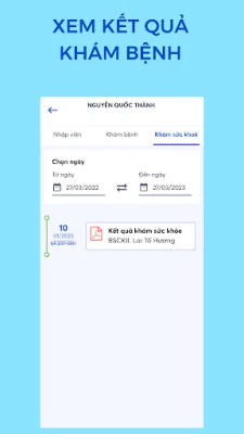• Xem Kết quả điều trị, Kết quả cận lâm sàng, Hình ảnh PACS, Đơn thuốc, Giấy ra viện