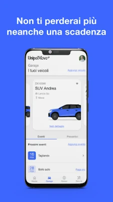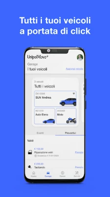 Salva le scadenze e le informazioni utili di tutti i tuoi veicoli. Gestisci e attiva i servizi più interessanti e tieni traccia dei preventivi fatti e degli eventi del tuo veicolo: in questo modo saremo noi a ricordarti le scadenze imminenti.