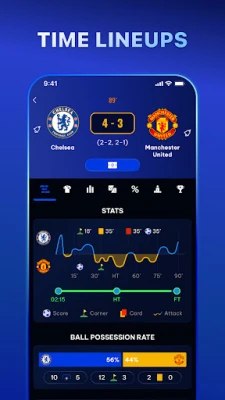 • Thông báo tức thì – Thông báo nhanh hơn cả trực tiếp. Nhận thông báo tức thì về bàn thắng, đội hình, phát lại, kết quả, thẻ đỏ, thẻ vàng, phạt góc, và nhiều thông tin khác qua cài đặt thông báo.