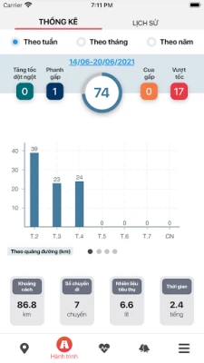 - Thống kê, theo dõi thông tin lộ trình cũng như tình trạng sức khỏe của xe.
