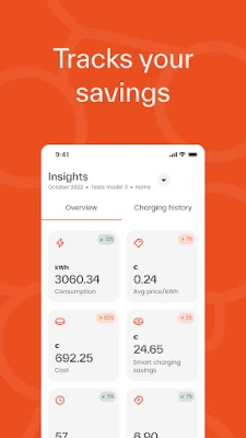 • Gives a full overview of your charging sessions