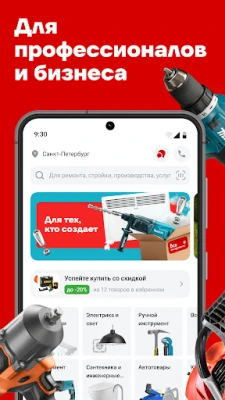 В нашем приложении более 2 млн товаров от ведущих брендов: Makita, Bosch, DeWalt, AEG, RYOBI, Ресанта, Технониколь и других. Предлагаем инструменты и оборудование для производства, строительства, сферы услуг. Найдется всё – от розетки до отбойного молотка.