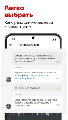 Наши менеджеры всегда на связи и не оставят вас один на один с вопросами. Мы поможем найти нужный товар, уточнить статус заказа и подобрать достойный аналог, если нужной модели не окажется в наличии. Обратиться за консультацией можно в приложении – написать в онлайн-чат или позвонить на горячую линию, нажав на иконку телефона.