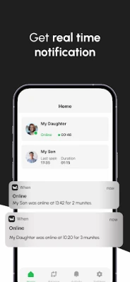 Bạn có muốn chắc chắn rằng con bạn được an toàn? Hay bạn muốn kiểm soát lượng thời gian họ dành cho các ứng dụng nhắn tin? Theo dõi các hoạt động trực tuyến/ngoại tuyến của họ trong thời gian thực bằng thông báo đẩy.