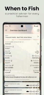 When to Fish is a practical advisor for every fisherman, who knows, that the catch isn't just a question of luck. Our app provides forecasts and conditions to help you find the best times and spots for freshwater fishing. It is your pocket fishing forecast, using weather and moon info and more.