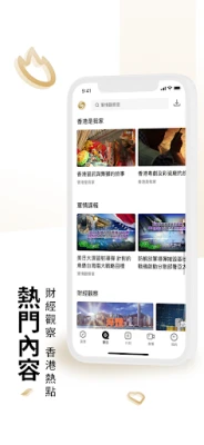 2.實時深度熱門資訊 –一手掌握「全球資訊」、「香港熱點」「財經觀察」、「軍情信息」等熱門話題,解析世界格局變化,深度了解天下熱點時事。