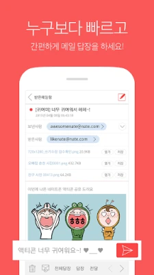 네이트메일 앱에서 사용하는 모든 메일을 받고, 보낼 수 있어요.