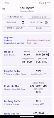 AcuRhythm Pro is an acupuncture app for Traditional East Asian Medicine practitioners interested in chrono-acupuncture. The app calculates 'open' points using various theories including: ,