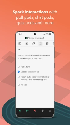 Attend meetings, webinars, and virtual classrooms with Adobe Connect. Adobe Connect for Android brings critical meeting capabilities to your mobile device, enabling you to attend meetings directly from your phone or tablet.