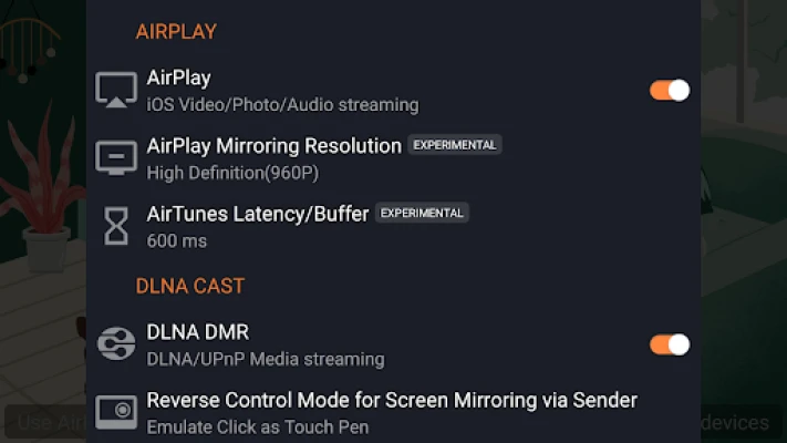 ●Install AirPinCast(Search 'AirPinCast' in Google Play) to share screen/media from Android devices