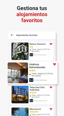 ✓ ORDENAR los hoteles por "recomendados", precio, valoración, o categoría.
