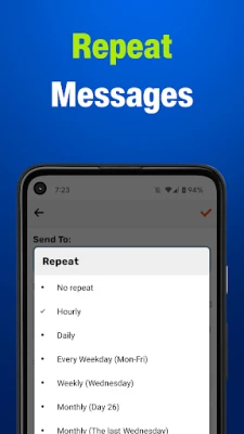 Recurring Messages: Set up repeating texts on hourly, daily, weekly, or custom schedules.