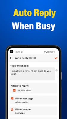 Auto-Reply Message – Text While Driving: Instantly auto-reply to SMS or Calls when you're busy, driving, or unavailable.