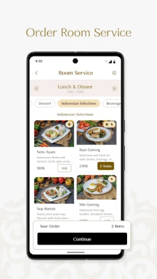 Order Room Service Breakfast in bed is made easy with our in-app room service ordering system. Explore our menu and easily order with a click of a button.