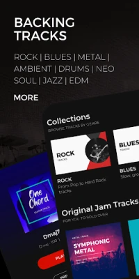 - Backing Tracks (Jam Tracks): play along original tracks of different genres made for you to elevate your soloing skills.