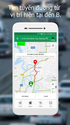 - Tìm tuyến đường từ A đến B: Nhập địa chỉ sau đó ứng dụng sẽ tự động vẽ đường dẫn tuyến.