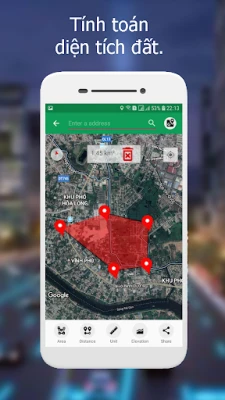 - Máy tính khu vực: bấm vào bản đồ cho vùng đất của bạn. Ứng dụng sẽ tính toán chính xác diện tích, khoảng cách, đêm trước.