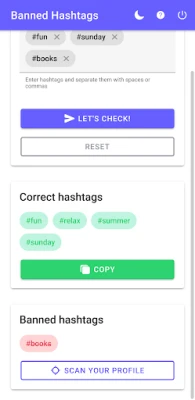 Verify your hashtags before posting and scan your profile for previously used #banned hashtags!