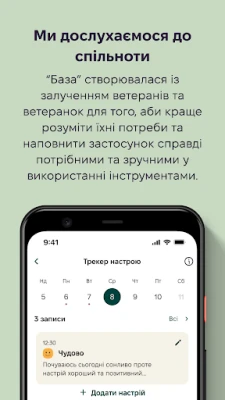 Крім того, у застосунку База є корисні для ветеранів та військових контакти, а також можливість зв'язатися зі психотерапевтом та отримати вчасну відповідь на запит.