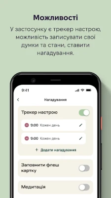 Трекер настрою: Відстежуй стани та думки за допомогою щоденника емоцій. Цей інструмент допоможе виявити патерни і тенденції у станах та їх вплив на самопочуття.