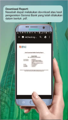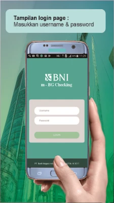 BNI m-BG Checking adalah suatu aplikasi mobile yang diperuntukkan kepada Nasabah BNI yang memberikan kemudahan dalam melakukan pengecekan dan/atau pencocokan data pada warkat Garansi Bank BNI yang diterima dari vendor/ mitra dengan data Garansi Bank yang ada pada sistem BNI secara online.