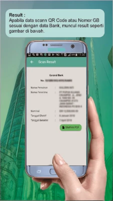 Beberapa benefit yang dapat dirasakan dari aplikasi BNI m-BG Checking antara lain sbb.: Nasabah merasa nyaman ketika menerima Garansi Bank BNI dari vendor / mitra karena dapat melakukan pengecekan kesesuaian data pada warkat dengan data pada Bank dengan mudah dan cepat. Proses pengecekan Garansi Bank semakin mudah karena cukup dengan melakukan scann QR Code pada warkat Garansi Bank atau dengan memasukkan nomor Garansi Bank. Hemat waktu dan efisien, karena nasabah tidak perlu datang ke Cabang apabila hendak melakukan pengecekan terhadap Garansi Bank BNI yang diterima dari vendor/ mitra.