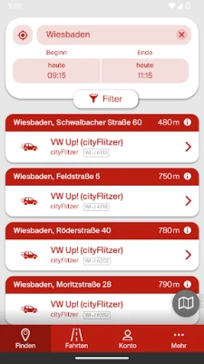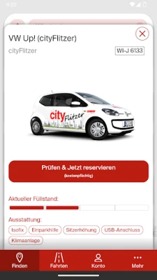 Kartenansicht: Alle stationsbasierten Autos und cityFlitzer Listenansicht: Alle Autos in der Nähe in einer einfachen Liste Schnellsuche nach Autotyp (z.B. Cabrio) und Ausstattung Sofort fahren: freie Autos spontan fahren und jederzeit innerhalb von sechs Stunden an der Entnahme-Station zurückgeben - ohne Aufpreis oder Stornokosten.