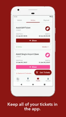 Passengers can now purchase a number of ticket types all on the one app. The app will learn ticket purchase behaviour and can present suggestions for frequently purchased tickets. Make use of our handy filters and find the tickets you need whether you're travelling across the region, in the city or to the Airport.