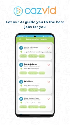 With CazVid you can quickly and easily post and view job listings and resumes. Filter job and resume listings to your requirements. See a job you like or a job seeking candidate that interests you? Click “contact me” and start communicating in the app for free.