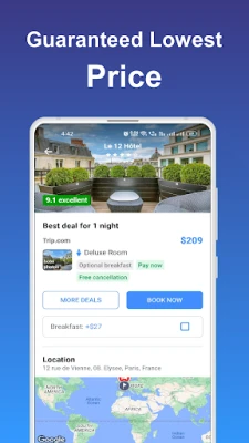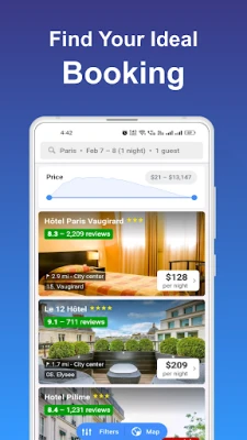This hotel booking app is a highly efficient and effortless way to find the best bed booking deals that will save you a lot of money. With this cheap hotel app, you will find thousands of advanced booking deals on hotels, apartments, and villas with huge savings available, without booking fees and the best price guarantee.