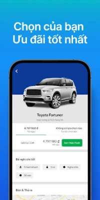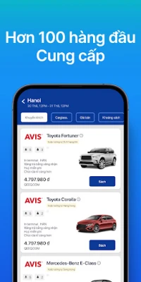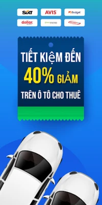 Ứng dụng thuê xe, tìm kiếm, so sánh và đặt những chiếc xe cho thuê tốt nhất một cách nhanh chóng. Nhận ưu đãi từ hàng trăm công ty cho thuê xe như Europcar, Enterprise rent a car, Be, Zoomcar thuê xe tự lái, Carla car rental, Alamo rent a car, Luxury car rental, Goviet rental car, Budget car rental, Zip car, Thrifty, Mioto thuê xe, đặt xe, Go việt, Grapviet, Turo, Economy bookings, National car rental, Rentalcars com, Discover cars, Fastgo rent car, Xego, Sixt car sharing, Hertz, và nhiều công ty khác.