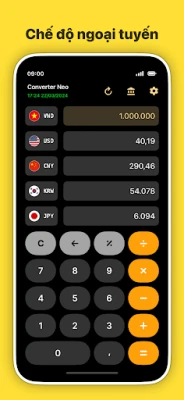 + Chế độ ngoại tuyến. Hoạt động mà không cần Internet + Tất cả các loại tiền tệ trên thế giới + Kích thước ứng dụng nhỏ chỉ 2 MB + Chỉ 1 quảng cáo mỗi ngày + Cập nhật mỗi giờ + Tiền điện tử + Tìm kiếm tiền tệ theo quốc gia + Máy tính (+ - × ÷) + Tỷ giá hối đoái chính xác + Được viết bằng Kotlin + Jetpack Compose