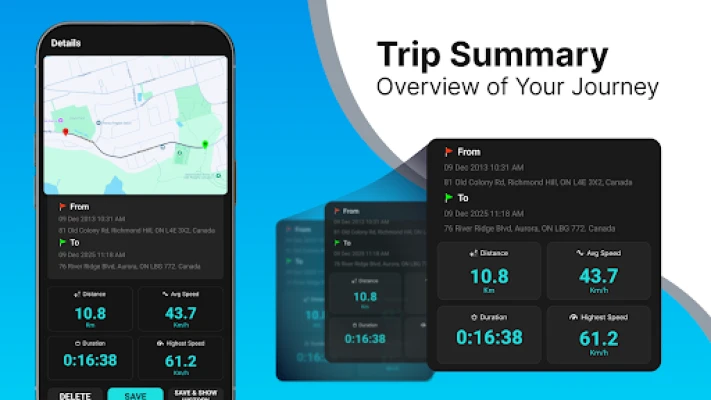 ✅ Theo dõi hành trình: Dữ liệu toàn diện Theo dõi khoảng cách đã đi, đồng hồ đo tốc độ xe trung bình và tốc độ tối đa cho mỗi chuyến đi