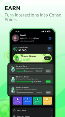 Conso introduces Conso Points ($CPs), the most Telegram-native reward system ever. Earn points for discovering content, using Mini Apps, sharing channels, and more. Your $CPs can even convert to on-chain tokens, bridging your interactions with real value.