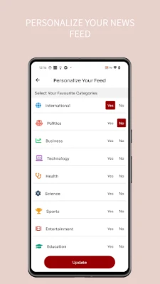 🎯 Personalized Feed: Pick your favorite categories — politics, tech, sports & more.