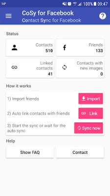 CoSy - Contact Sync for Facebook syncs your facebook friends profile images with your local phone contact images.