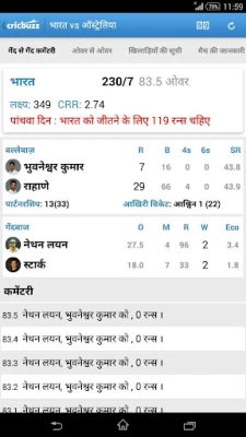- For the Complete Cricket App in English (which includes ball by ball commentary, news, photos, rankings, archives and much more) download this version of the Cricbuzz App here: https://play.google.com/store/apps/details?id=com.cricbuzz.android